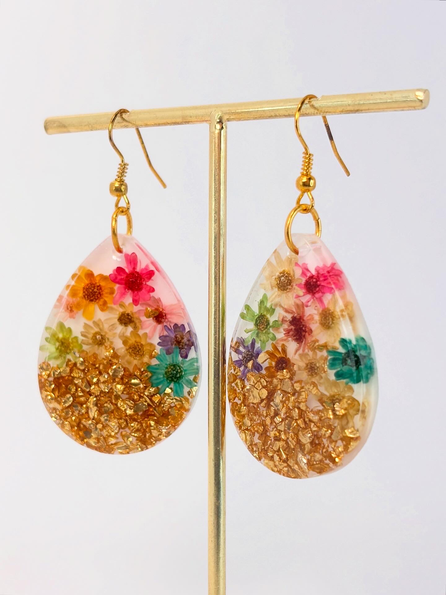Ce ne sont pas que des boucles d’oreilles ; Ce sont des oeuvres d’art à porter, un paysage botanique miniature conservé dans une résine époxy cristalline. Leur design unique en fait une pièce maîtresse parfaite pour n’importe quelle tenue, apportant de la couleur et du luxe à votre style de tous les jours.