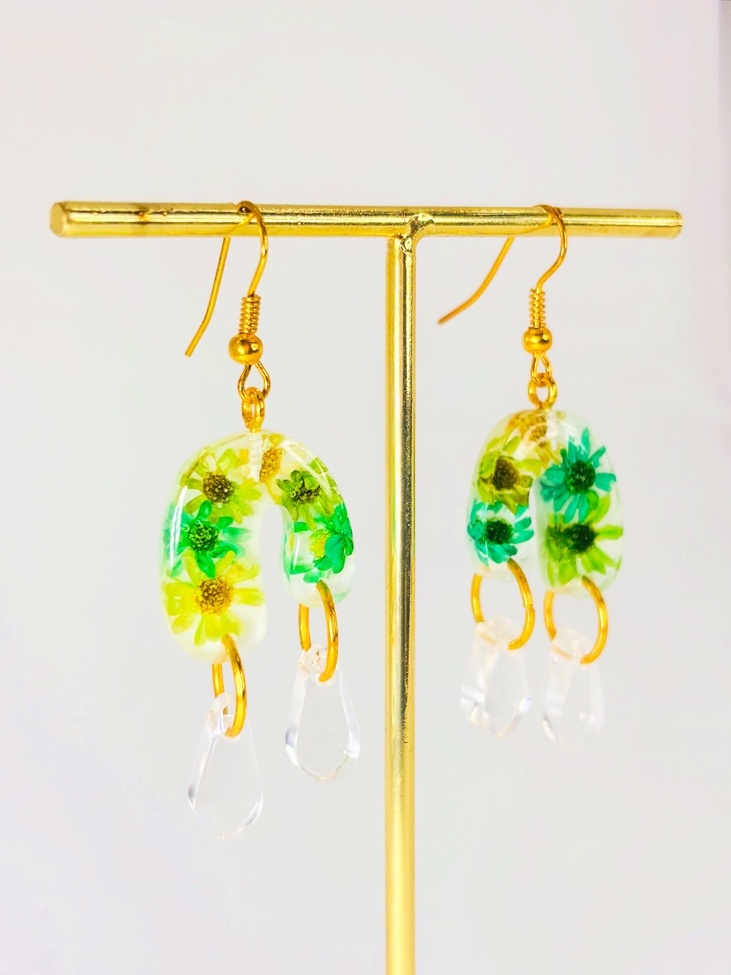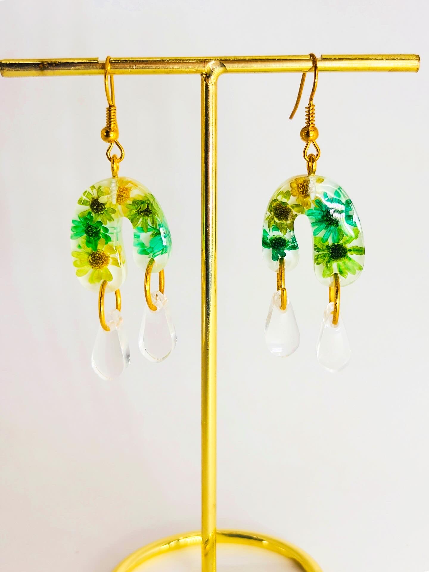 Apportez une touche d’élégance naturelle à votre collection avec ces boucles d’oreilles en résine faites main ornées de vraies fleurs de glixia vertes. Chaque fleur délicate est soigneusement préservée dans une résine transparente de haute qualité, créant un motif floral à la fois moderne et classique, à la fois léger et confortable.